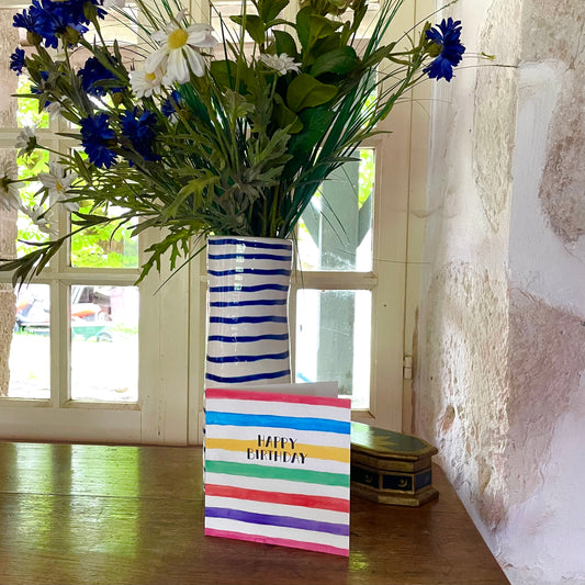 K75 Happy Birthday Rainbow Stripes Greetings Card