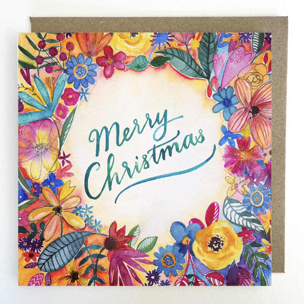 'Floral Ring Merry Christmas' Greetings Card, by Kate Downey Art