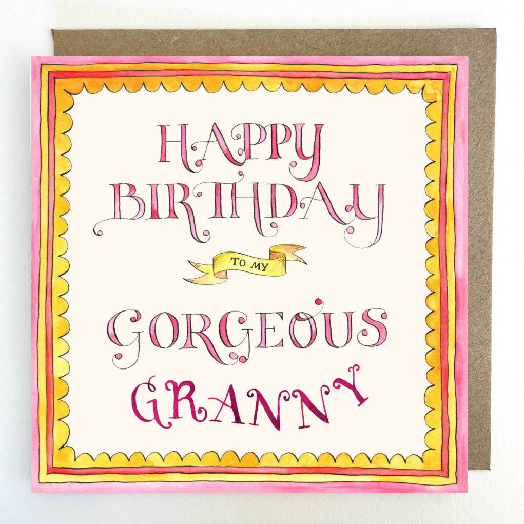 Happy Birthday Gorgeous Granny Greetings Card by Kate Downey Art